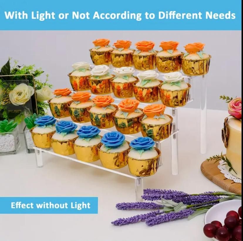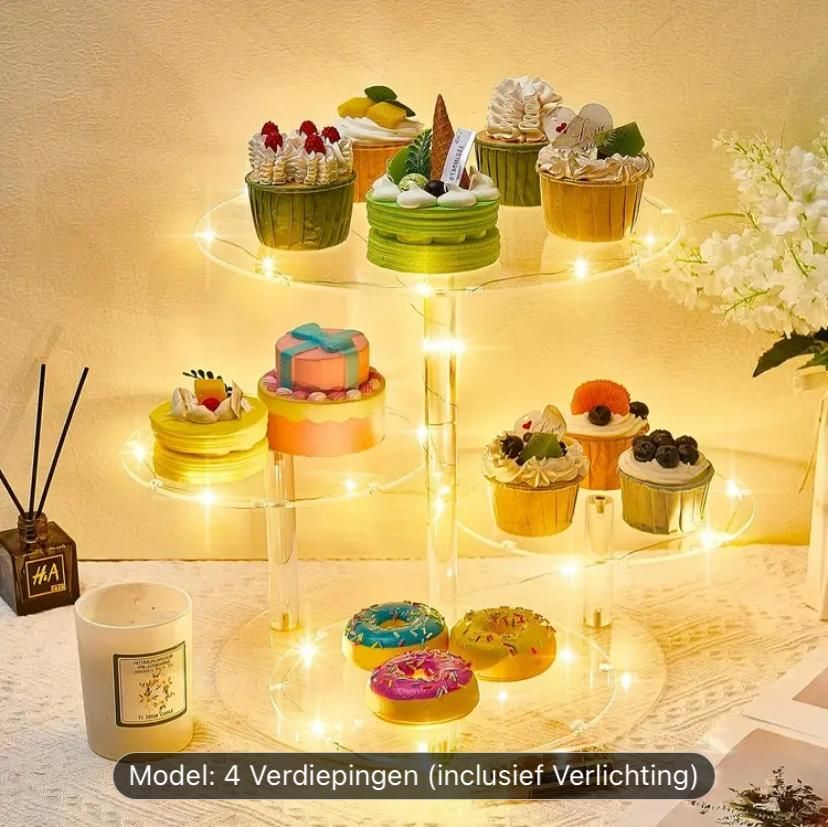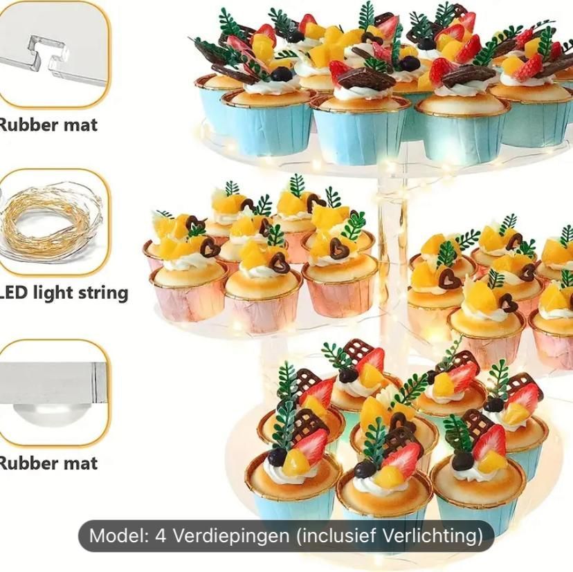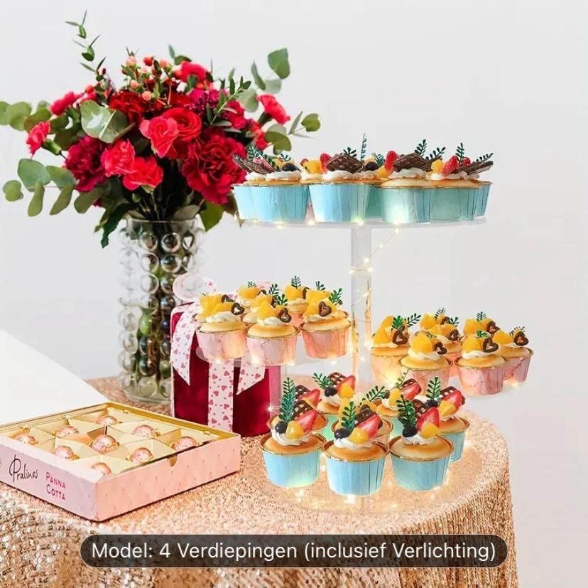 Cupcake stand 4 verdiepingen met licht voor bruiloften, jubilea, babyshowers, verjaardagfeestjes en bazaar